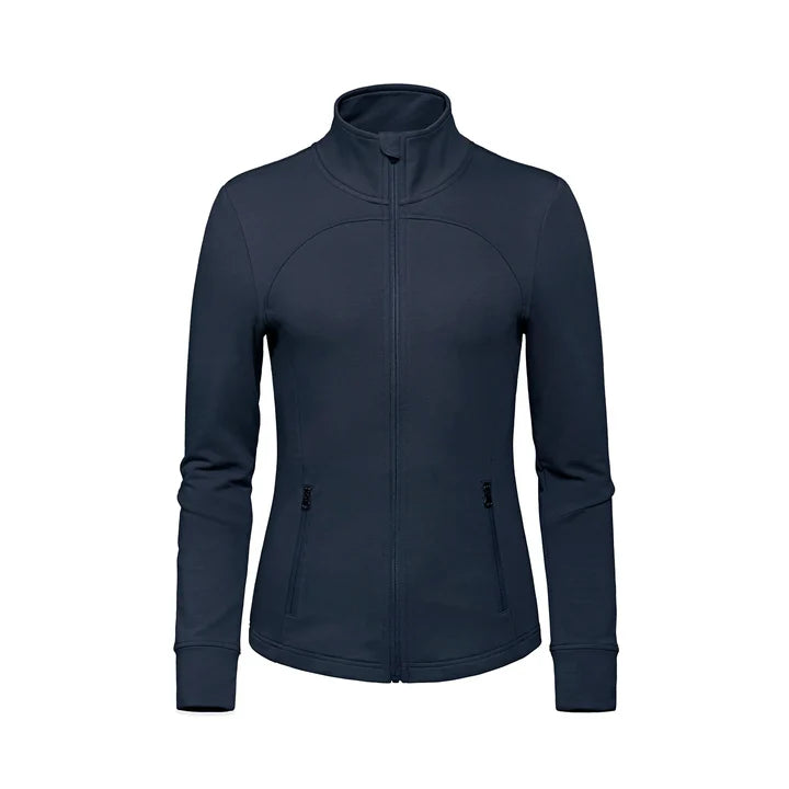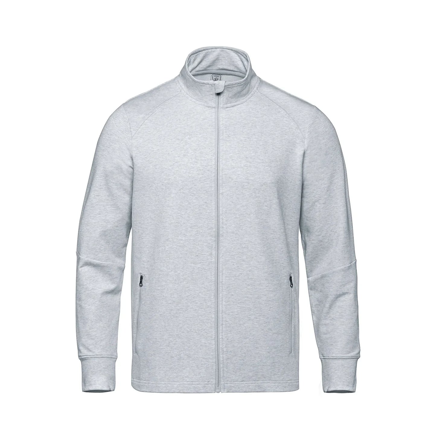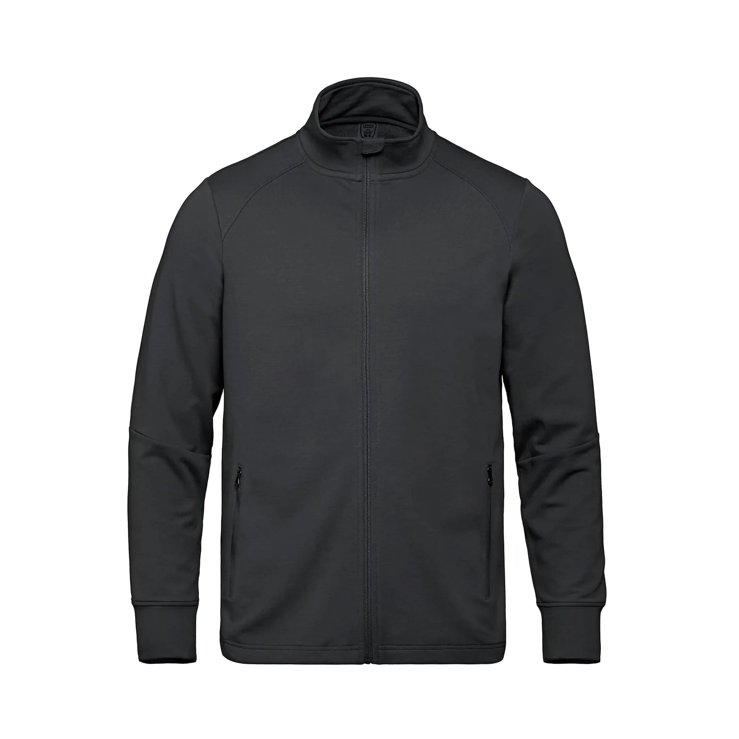 275 GSM - 8.1 oz/yd2 - 13.5 oz/lin. yd. 64% cotton, 30% recycled polyester, 6% spandex. Stretch french terry with wicking and anti-bacterial finishes. YKK front zipper and lower pocket zippers. Front and back shoulder yoke seam detail. Self-fabric sleeve cuff. Seam detail on sleeve at elbow.