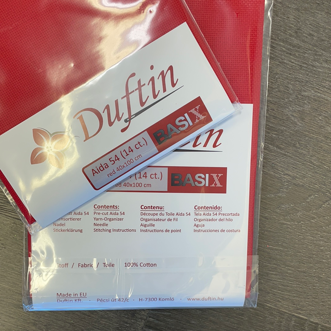 This Aida Cloth by Duftin measures approximately 40 x 100 cm. It is 14 count