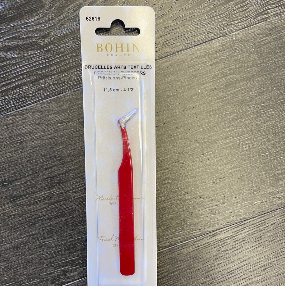 These extremely sharp tweezers are perfect for manipulating threads in embroidery or textile arts. Also work great for threads on sergers, install ornamental beads, or traditional quilting motifs.