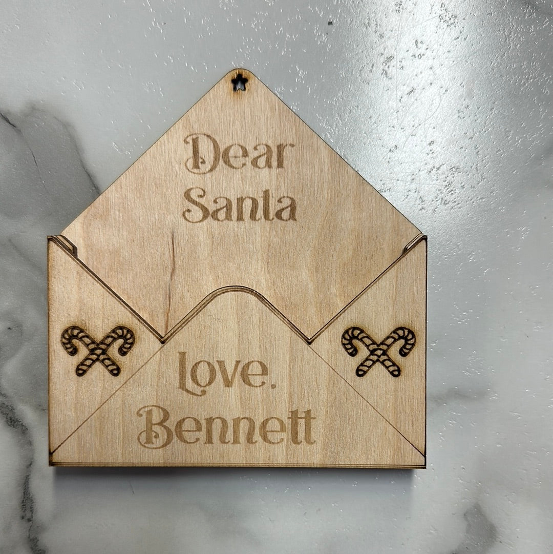 These little wooden envelopes are made to hold a folded piece of paper and send off the request list to Santa.