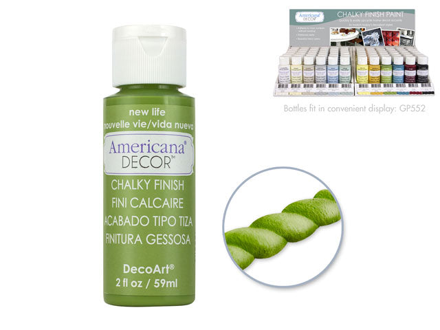 these Chalky Decor Paints are 2fl oz bottles ready for your crafting needs.