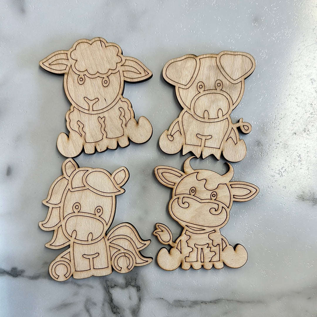 animals consist of two layers to be glued together. One solid backer with an outline layer for the front.