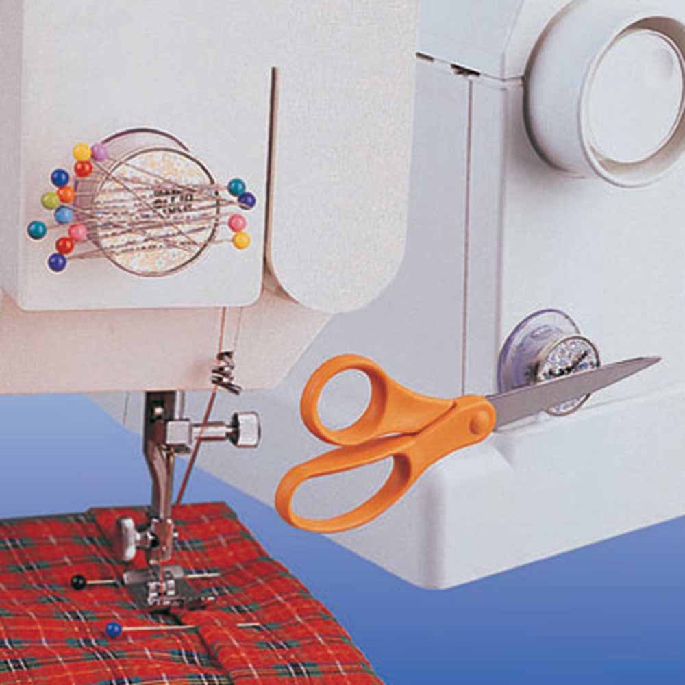 Scissor SpotTM/Pin PlaceTM magnet holds your scissors securely with the handles ready to grab! Press the suction cup onto the side of your machine or locate it just above your sewing machine pressure foot and instantly deposit pulled-out pins as you keep machine sewing.