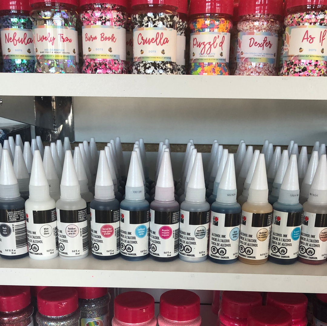 Create stunning works of art on a variety of surfaces with vibrant and versatile alcohol inks! Use the wide range of dye-based colors on their own or blend the inks together for infinitely creative possibilities. Our uniquely magical Rainbow and Color-Shift colors add a mesmerizing shimmer effect. The Extender increases the inks’ open time, lightens and lifts colors, and increases transparency.