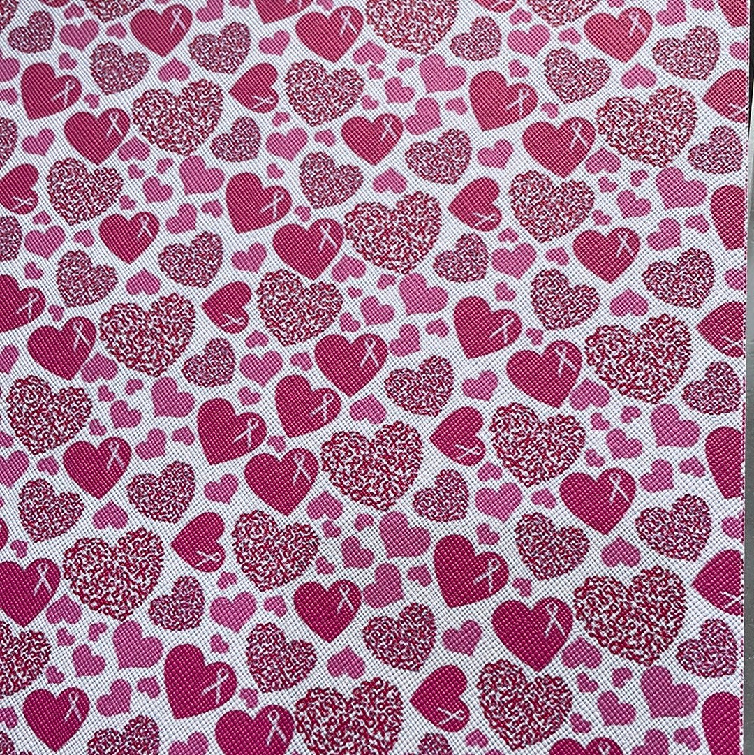 Pink Hearts & Ribbons Faux leather