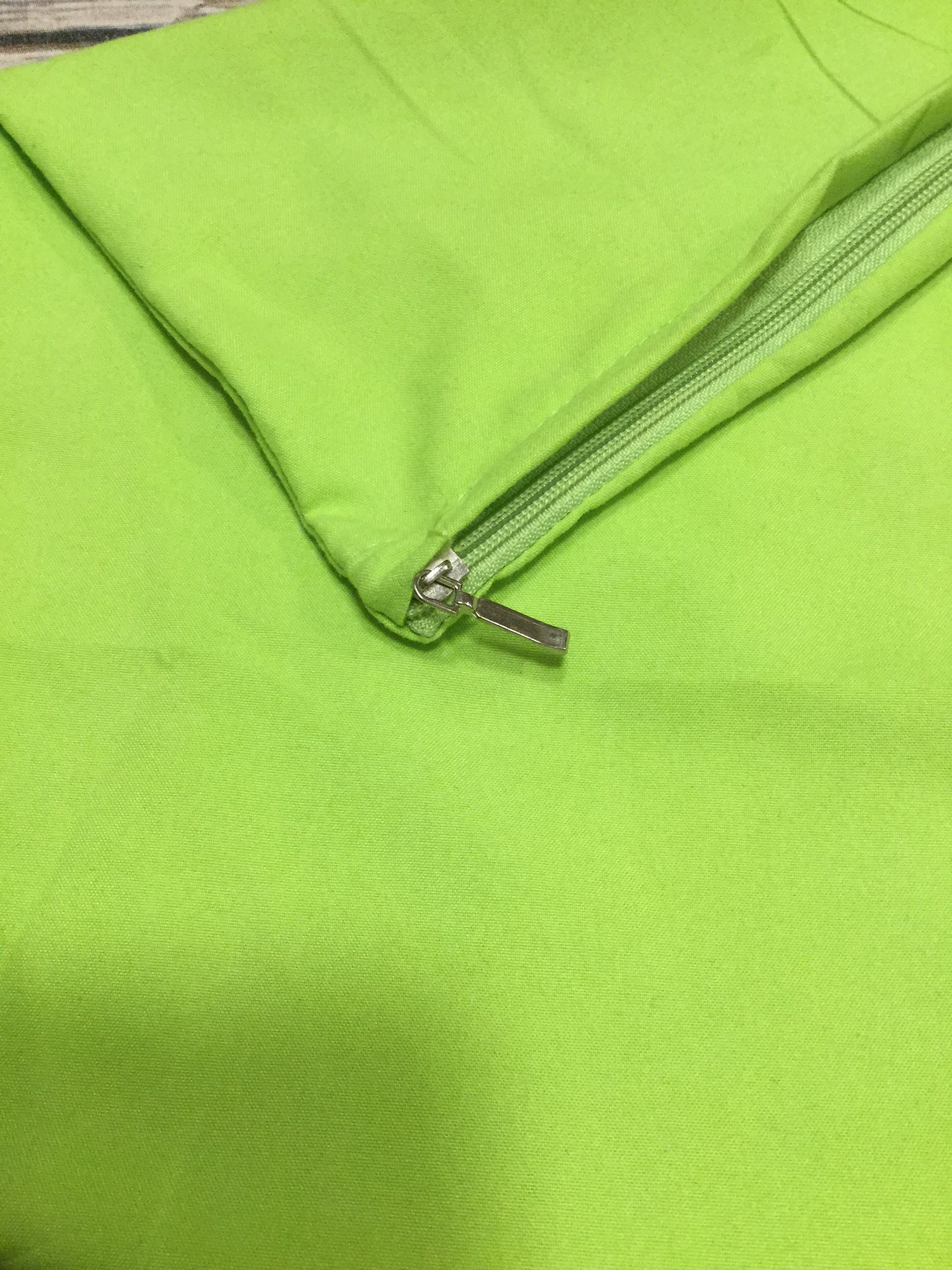 Zipper is the same colour as the pillowcase. Has a silver zipper pull.
