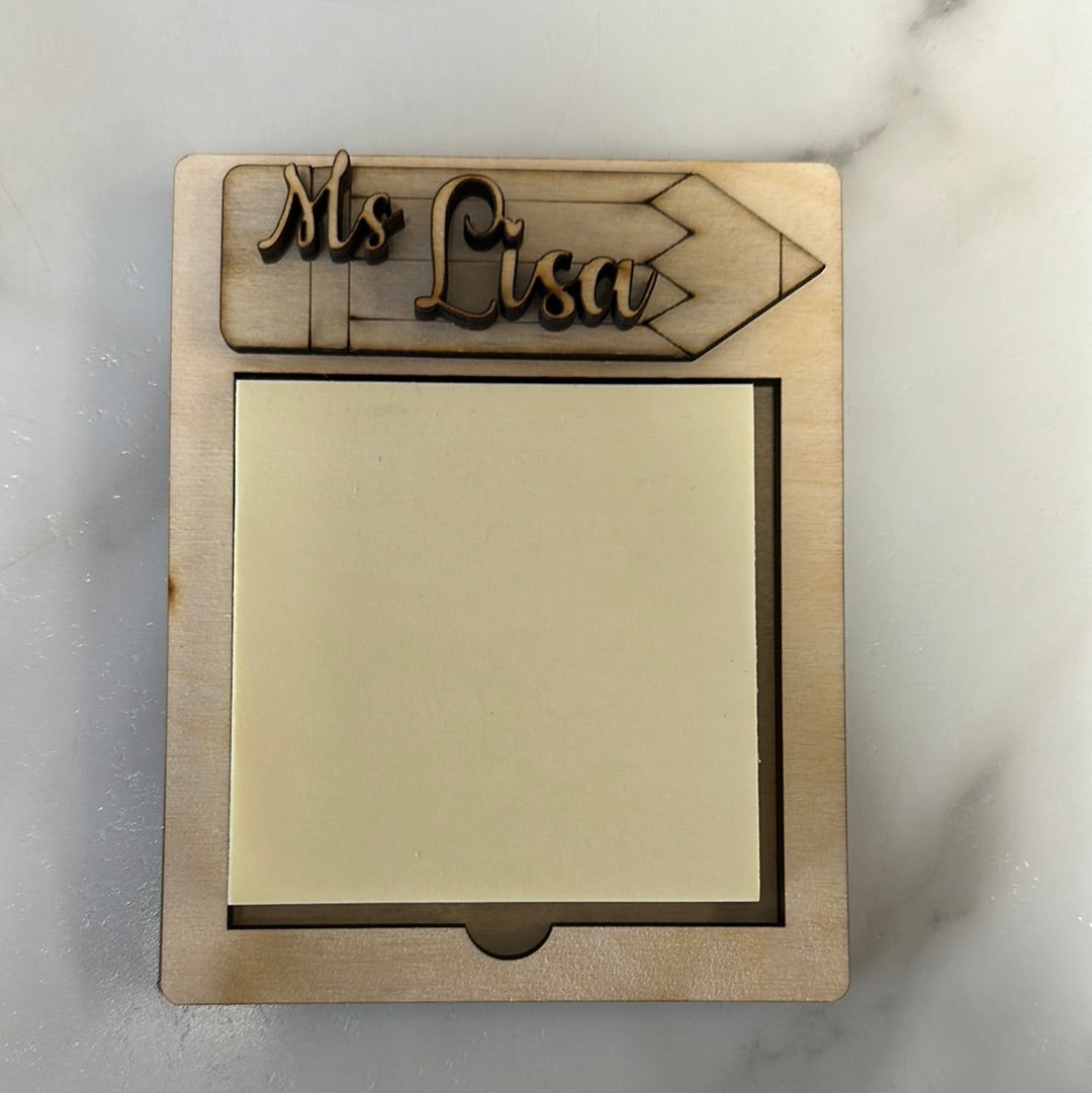 These wooden post it note holders will be available in many styles and offered without engraving. you may add your own designs, with paint or vinyl.