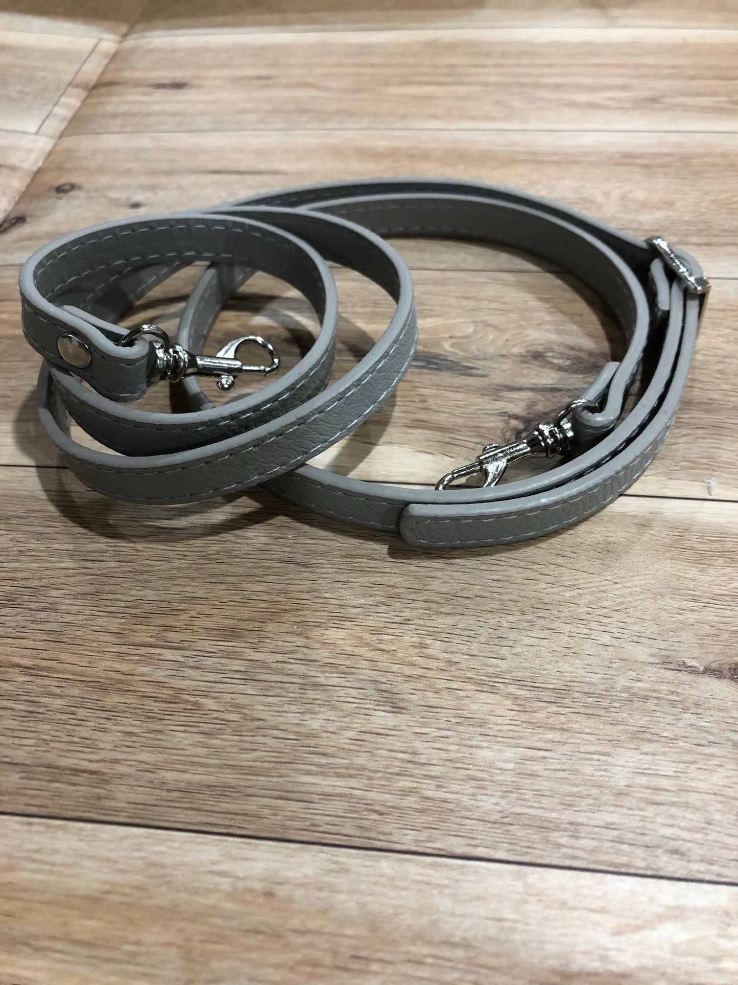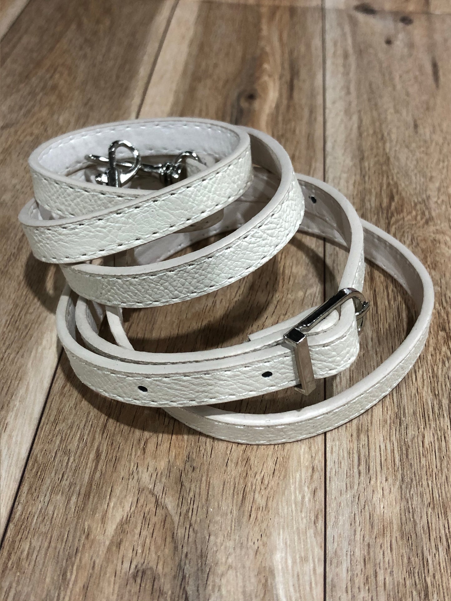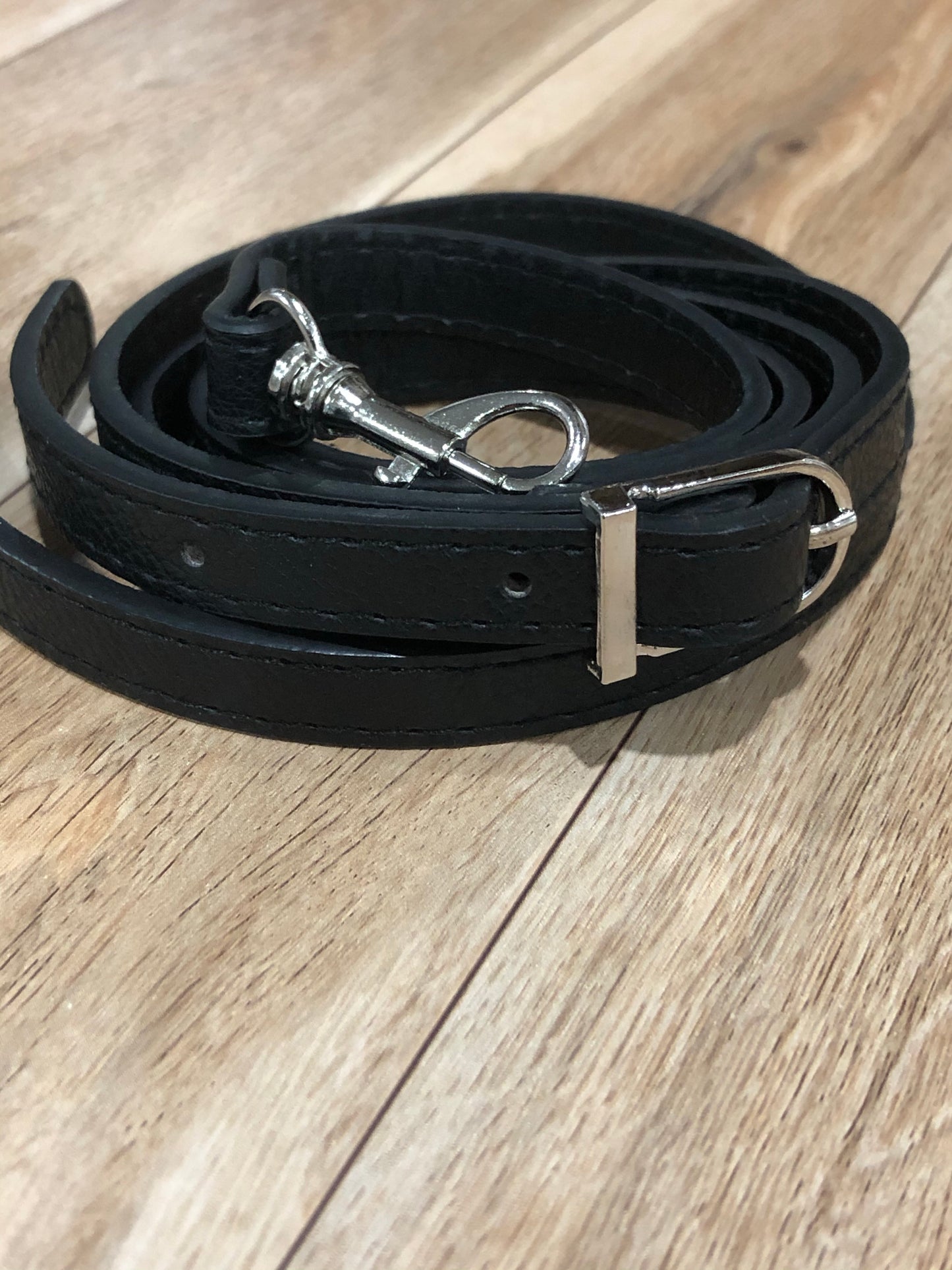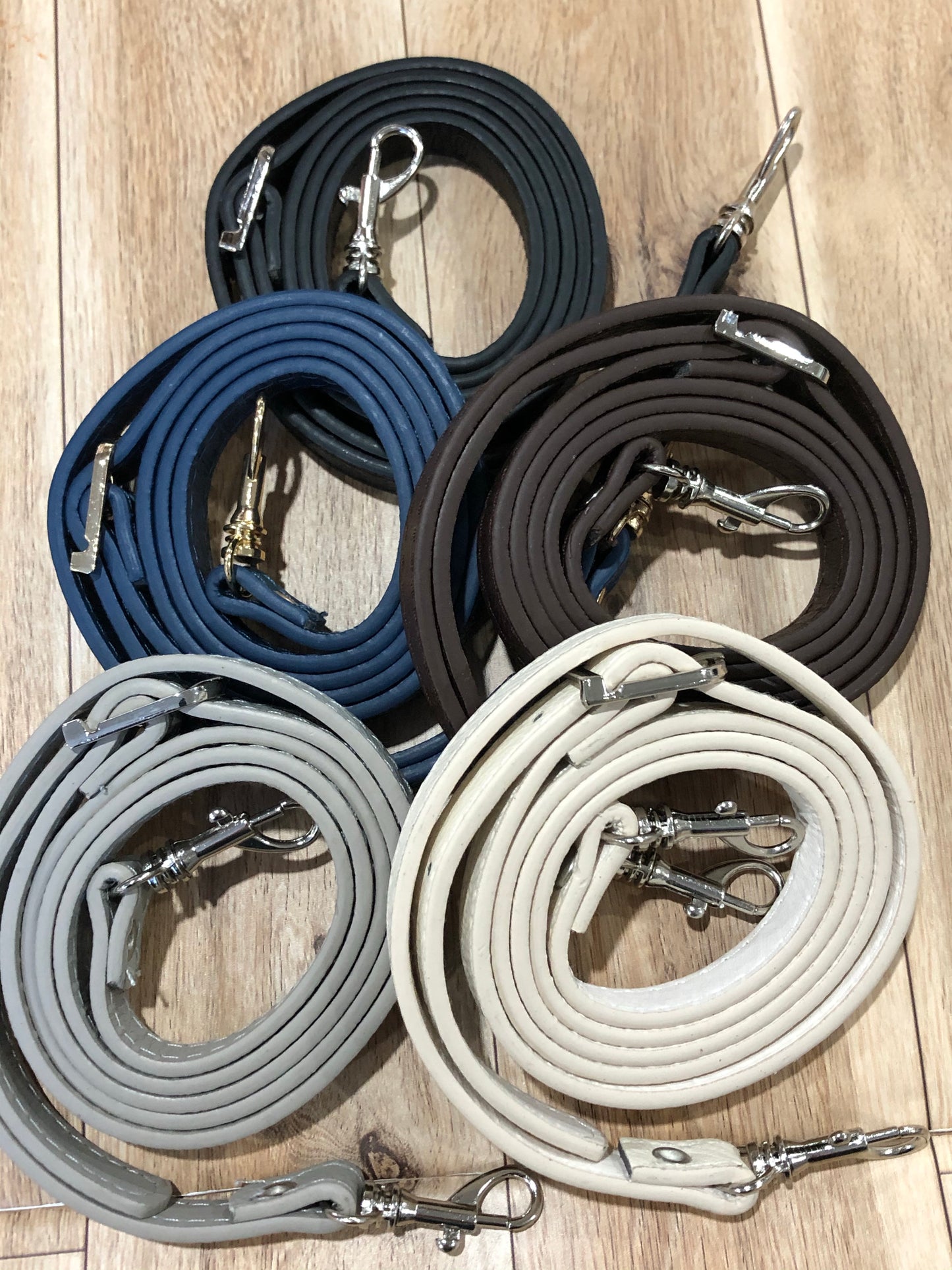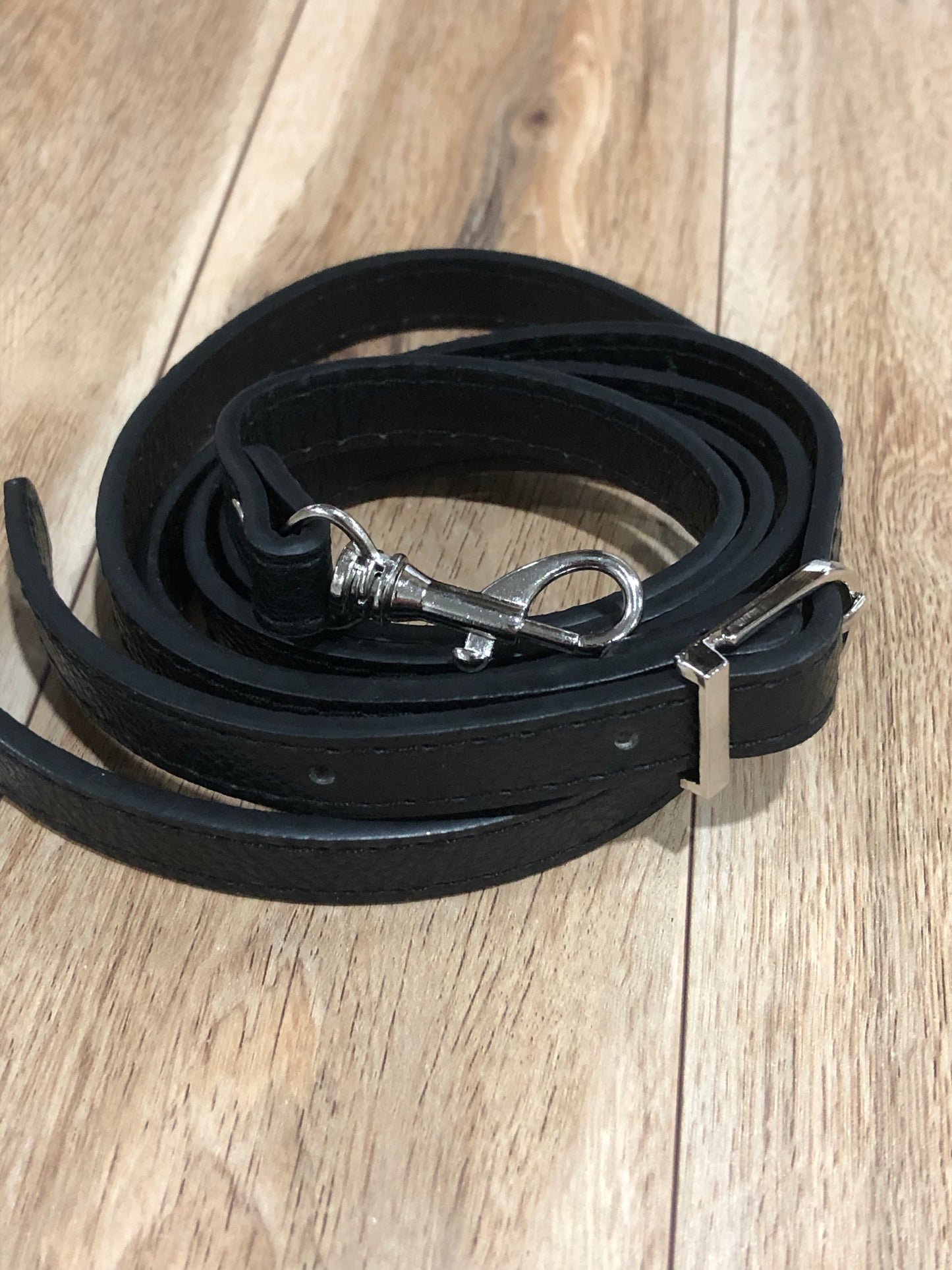 These faux leather shoulder bag straps are approximately 1.2 cm (just under 1/2") wide. they are adjustable in length by using the moving the belt hook to another hole. Length is 110 - 120 cm total